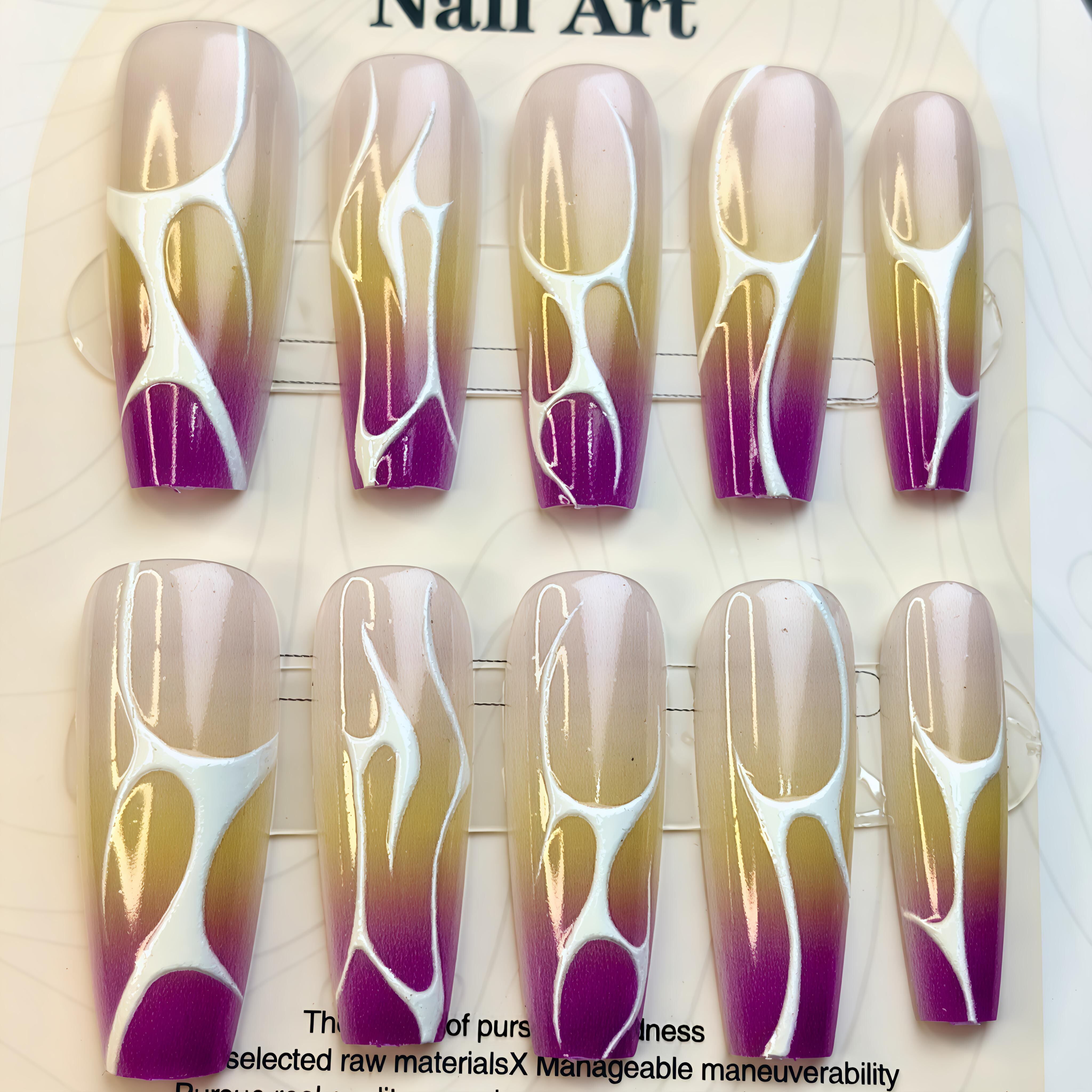 商品構成:ネイルチップ10個、ネイルファイル 1枚、ウッドスティック 1本、消毒コットン 1枚、両面粘着テープ 24本分(2回分)