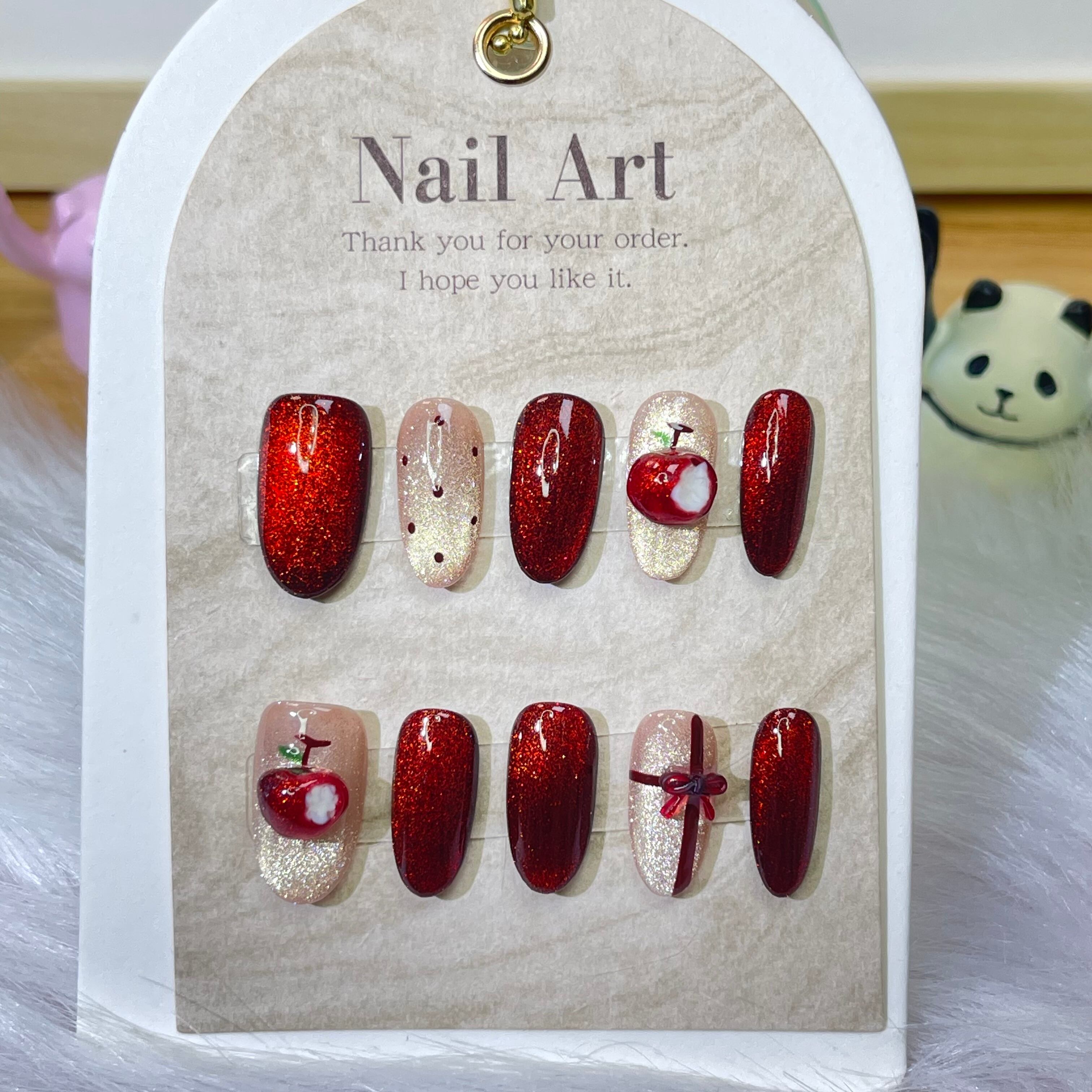 商品構成:ネイルチップ10個、ネイルファイル 1枚、ウッドスティック 1本、消毒コットン 1枚、両面粘着テープ 24本分(2回分)